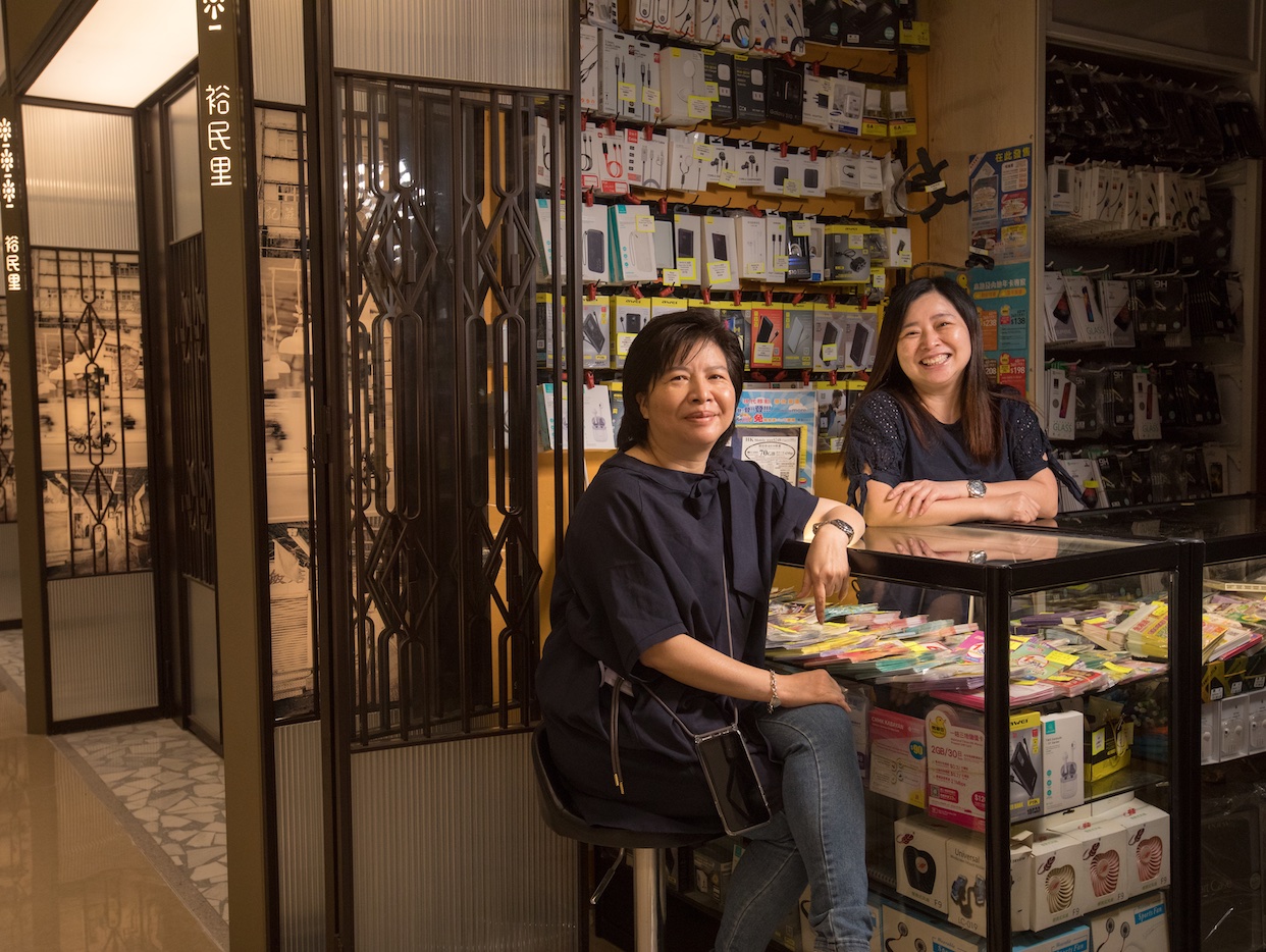 隨着電訊業的轉變,兩姊妹也由賣電話轉為賣電話配件;由最初的「通訊靈」,後來易名為「至尊電訊」;由裕民坊街舖、到工廈舖、至今年四月遷入裕民里,不論怎變,街坊似乎都向着她們走。「這區重建了,有些街坊都搬走了,但他們就似識途老馬,懂得找我們。」她倆不做電話維修,但會幫街坊處理一下智能電話的設定。她們在裕民里的新舖,就在巴士候車區的這層,等車的人可能會好奇,為何看似簡簡單單的一間舖,總是有很多人在聚舊聊天,歡天喜地似的 。而店內的那兩姊妹,經歷百千,總是臉熟,就似在觀塘的某處,一定曾經碰過她們一樣,或許這叫做「親切感」。